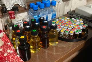 写真はその練習用の小瓶酒である。